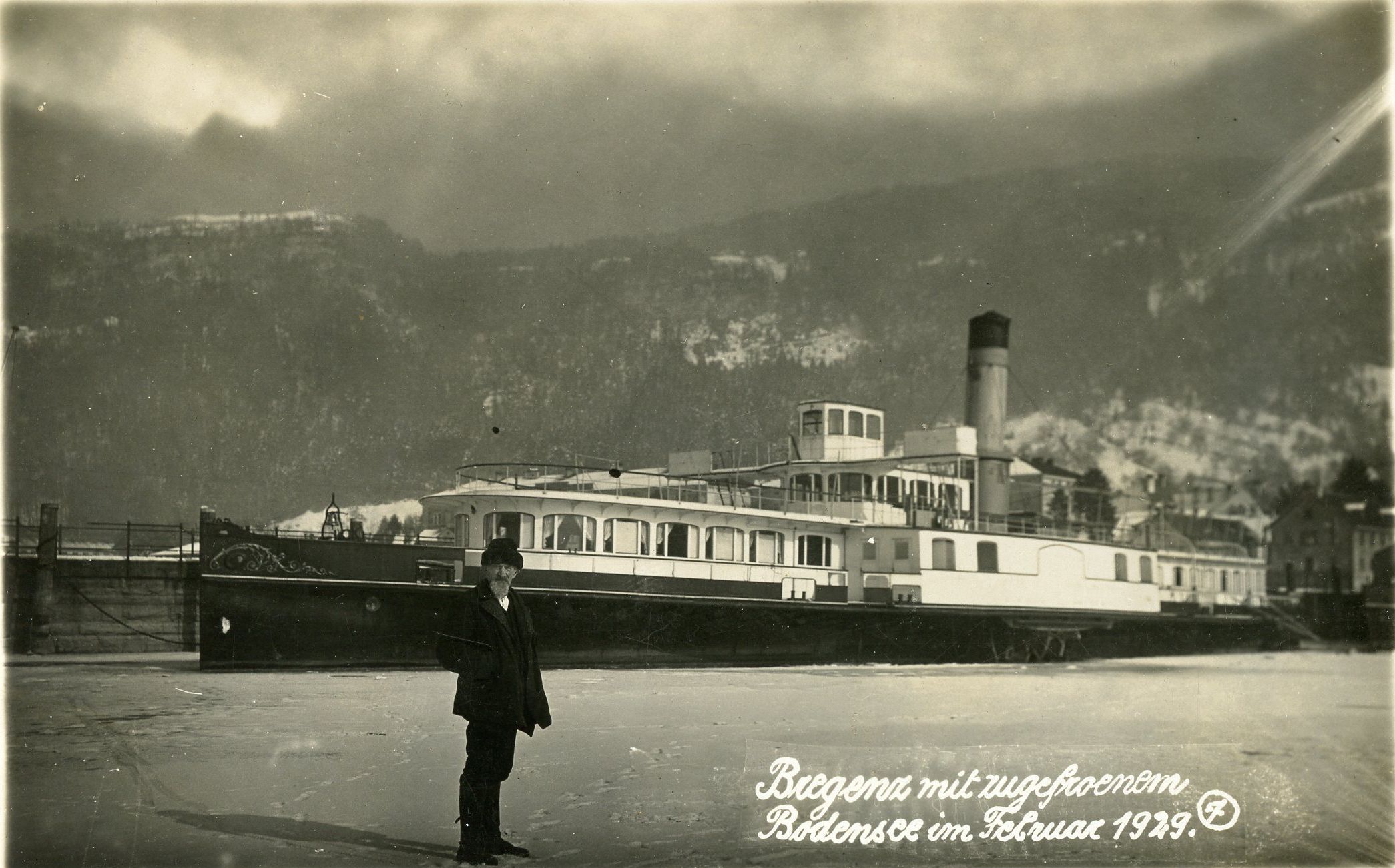Bregenz während der Seegfrörne 1929 im Heimathafen
