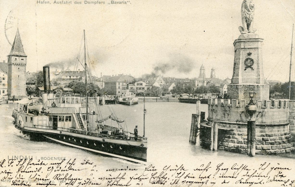 SD Bavaria I um 1900 bei der Ausfahrt aus dem Lindauer Hafen
