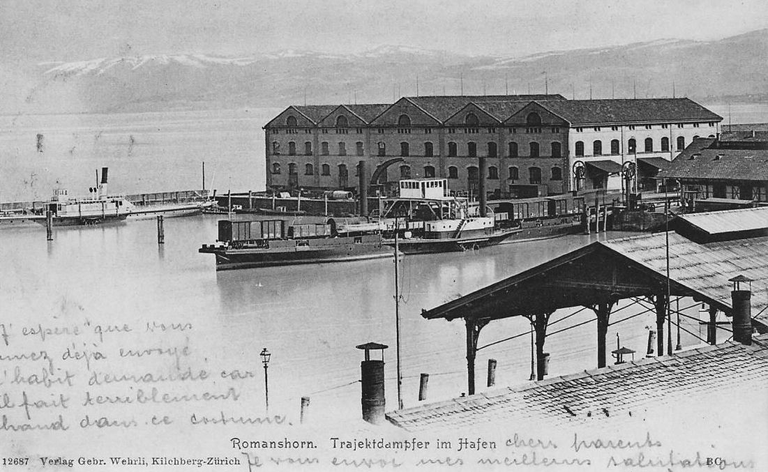 Anfang des 20. Jahrhunderts im Hafen von Romanshorn - links GD Bodan