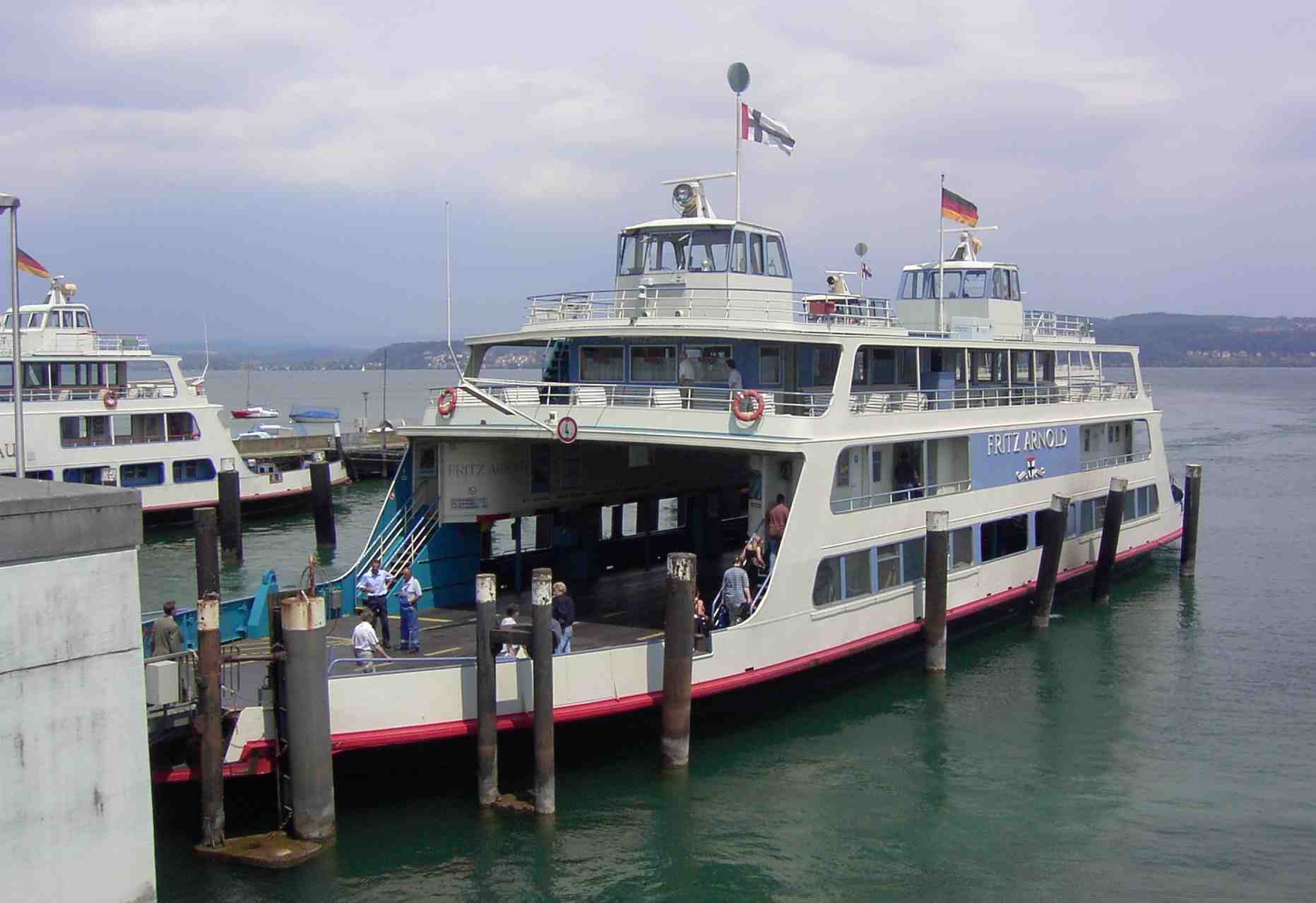 Das MF Fritz Arnold am Fähranleger in Konstanz-Staad im Juni 2003 (Bild: Archiv Bodenseeschifffahrt.de)