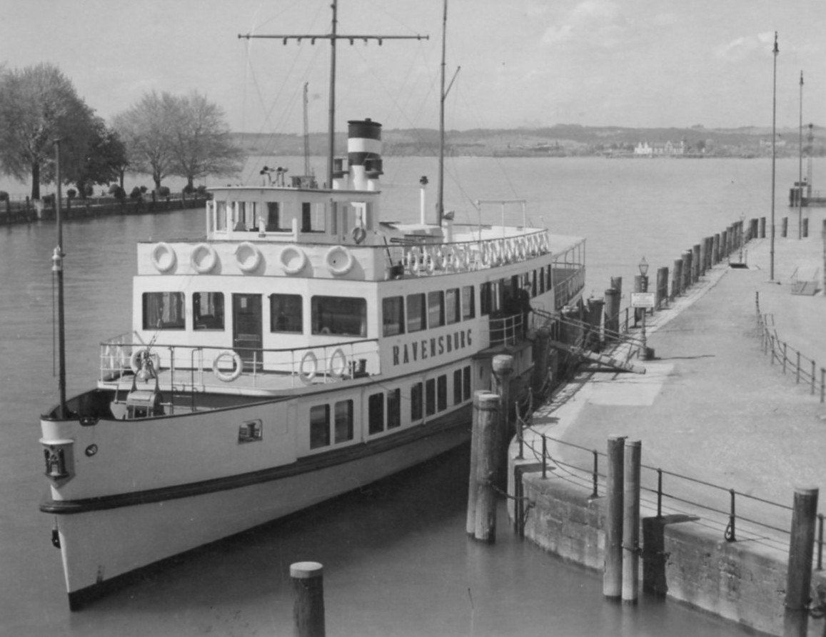 Das MS Ravensburg Anfang der 50er Jahre im Heimathafen Friedrichshafen