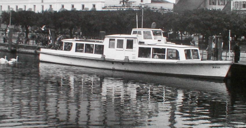 Das MB Adler II mitte der 50er Jahre des 20. Jahrhunderts im Lindauer Hafen an Platz 5 (Bild: Archiv Bodenseeschifffahrt.de)