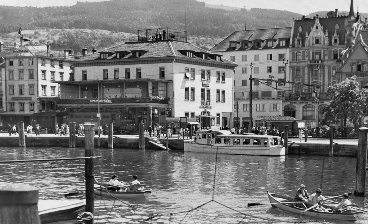 MB Rheinlust (II) in den 50er Jahren an seinem Steg im Rorschacher Hafen