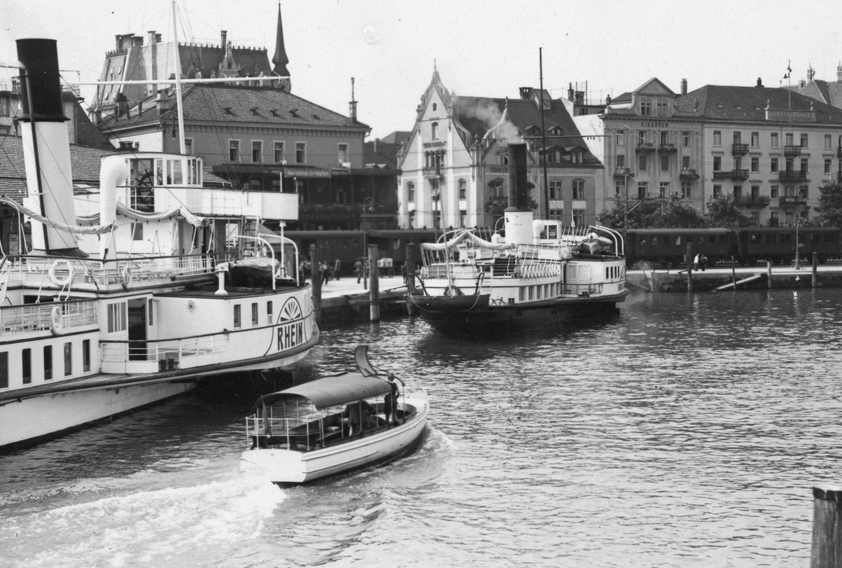 v. l. SD Rhein III, MB Stadt St. Gallen und SD König Wilhelm in den frühen 1930er Jahren im Rorschacher Hafen